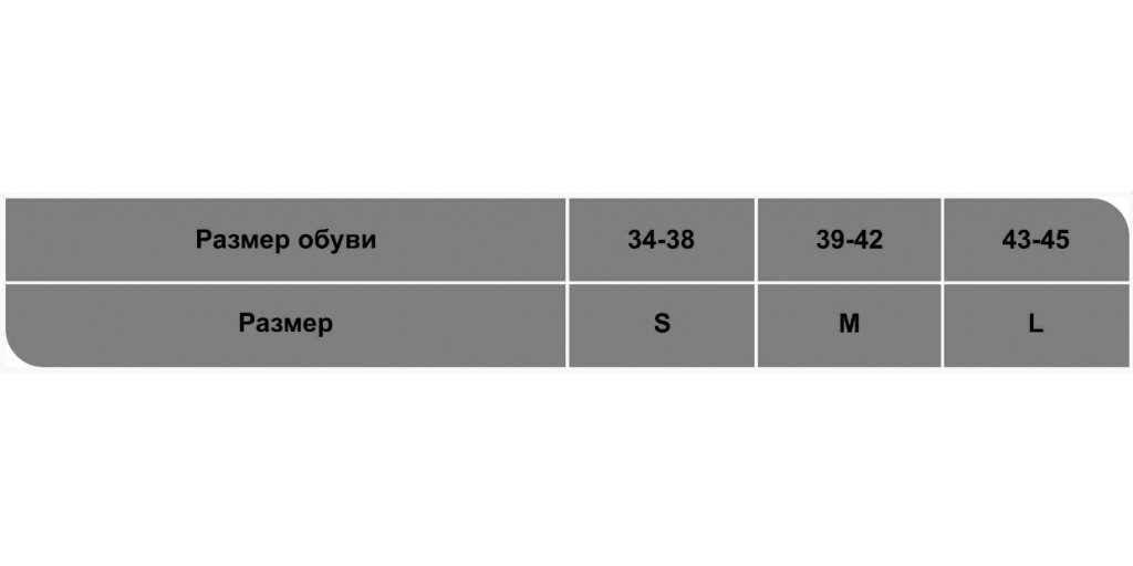 | Размер обуви | 34-38 | 39-42 | 43-45 |