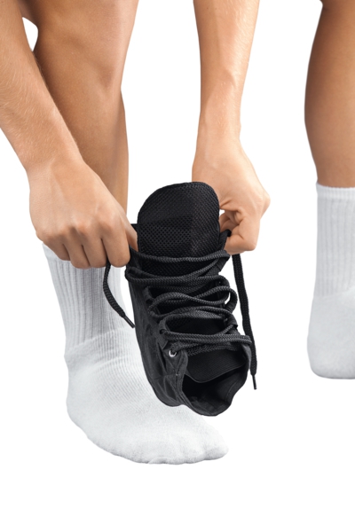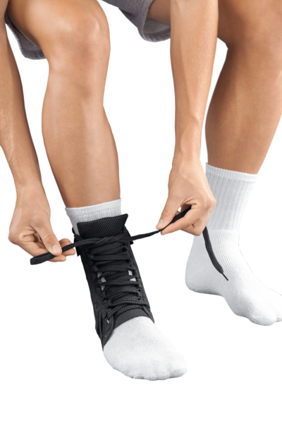 Принципиальное отличие protect. Ankle lace up от других ортезов данного типа заключается в том, что в нем применяется шнуровка, которая позволяет регулировать степень стабилизации голеностопного сустава в широком диапазоне. Эта особенность очень важна для тех пациентов, которые не могут надеть обычное компрессионное изделие из-за сильной боли в области травмы.